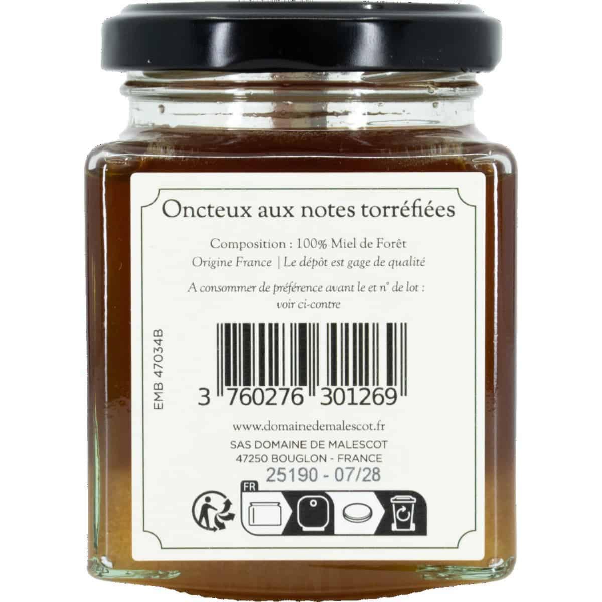 Miel de forêt certifié bio récolté dans le limousin par Les Abeilles de Malescot. Pot de 250 g.